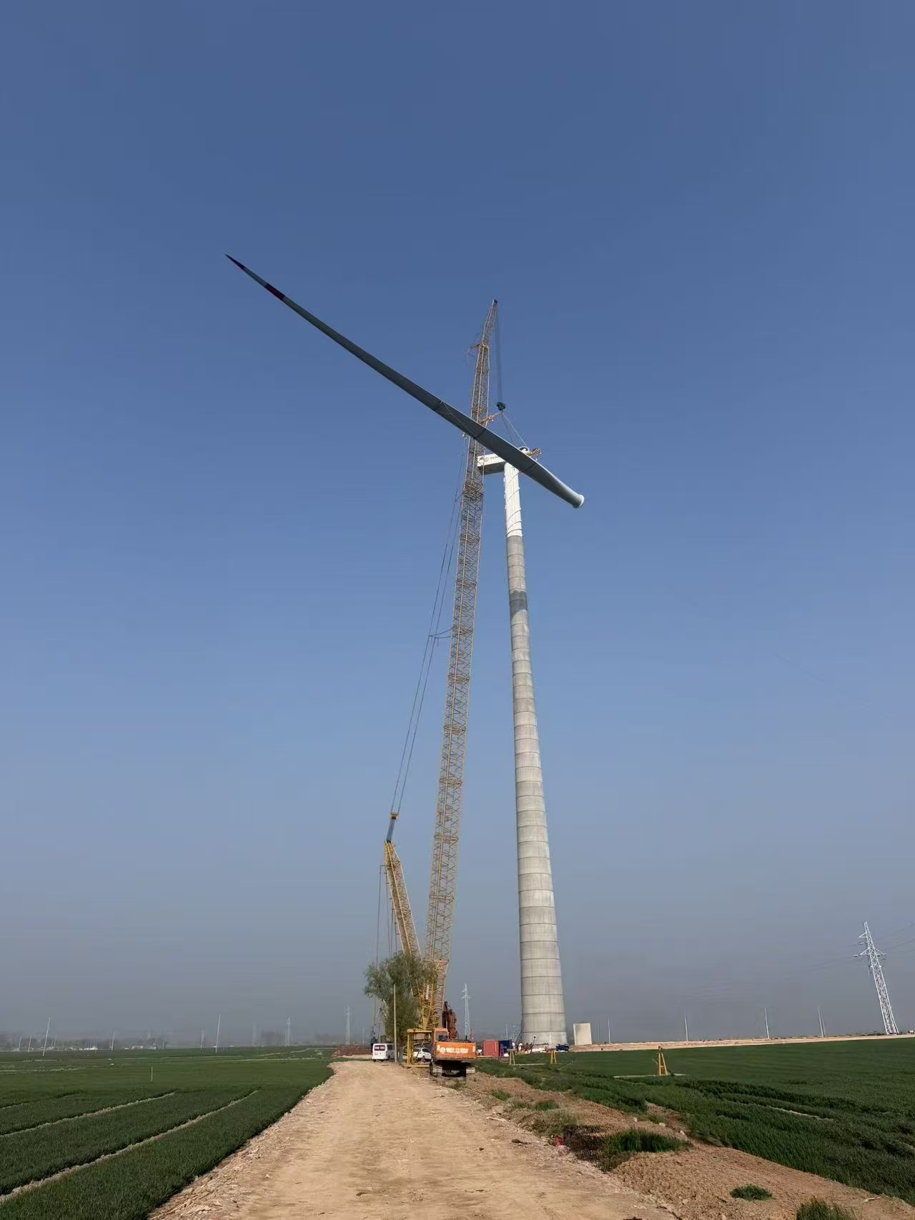 3月31日,水电公司德州市陵城区肖家村风电项目首台风机整体吊装作业完成。 本次风机整体吊装是项目建设进程中的关键节点,施工内容覆盖机舱吊装、扇叶起吊对接等核心环节,具有技术要求高、施工难度大的特点。项目团队提前制定专项施工方案,完成现场地形勘查工作,对安全防护流程与技术交底环节进行细化规范。吊装作业实施过程中,重型履带吊平稳起吊,各岗位施工人员紧密配合、精准操作,先将风机机舱精准吊至塔筒顶端定位位置,再依次完成单扇叶片的组装与整体对接作业,最终实现机舱与叶片一次性安装到位。 下一步,项目将以首台风机吊装完成为契机,加快推进剩余风机吊装、电气线路及配套设施建设,严把质量与安全关,力争项目早日全容量并网,为陵城区经济社会绿色高质量发展注入强劲动能。 |