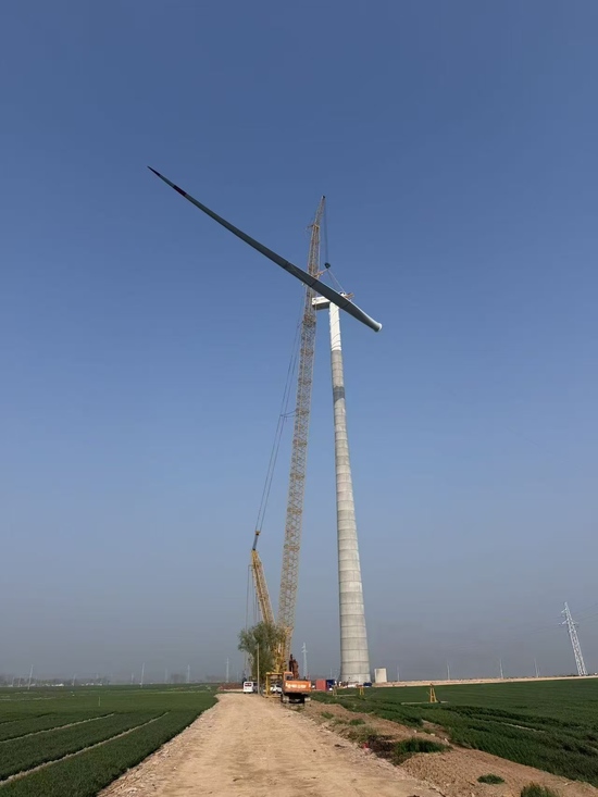 陵城区肖家村风电项目首台风机吊装完成 |
